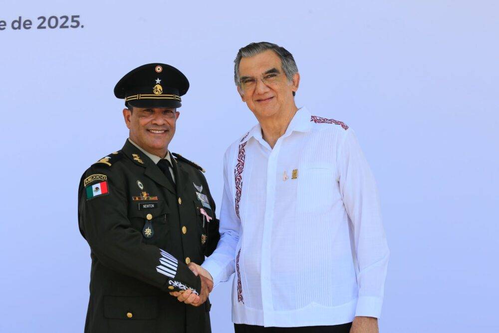 Asiste gobernador Américo Villarreal a toma de protesta del comandante interino de la 48 Zona Militar