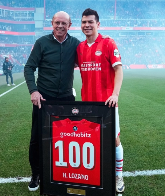 En los prolegómenos del duelo, Lozano recibió una camiseta conmemorativa de los 100 partidos que ha disputado con el equipo neerlandés, al que regresó esta temporada tras cuatro cursos en el Nápoles.