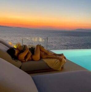 En la foto que sólo publicó con un emoji de corazón, los artistas aparecen con sus trajes de baño enfrente de una alberca y con el mar de fondo, mientras se puede ver el atardecer; haciendo de esta una de sus postales más románticas. Con esta imagen, Notni y Boneta vuelven a demostrar que están muy enamorados y que no desaprovechan ningún momento juntos.
