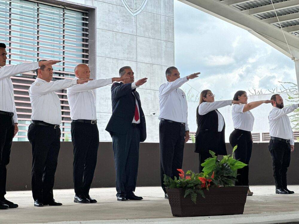 “Esta universidad tiene la gran responsabilidad de lograr que cada uno de ustedes pueda servir a las familias y las comunidades con base en los principios de la función policial; que todos sean buenas y buenos primeros respondientes que acompañen a las víctimas del delito, presten auxilio, prevenir el delito, perseguirlo e investigarlo”, enfatizó el rector.