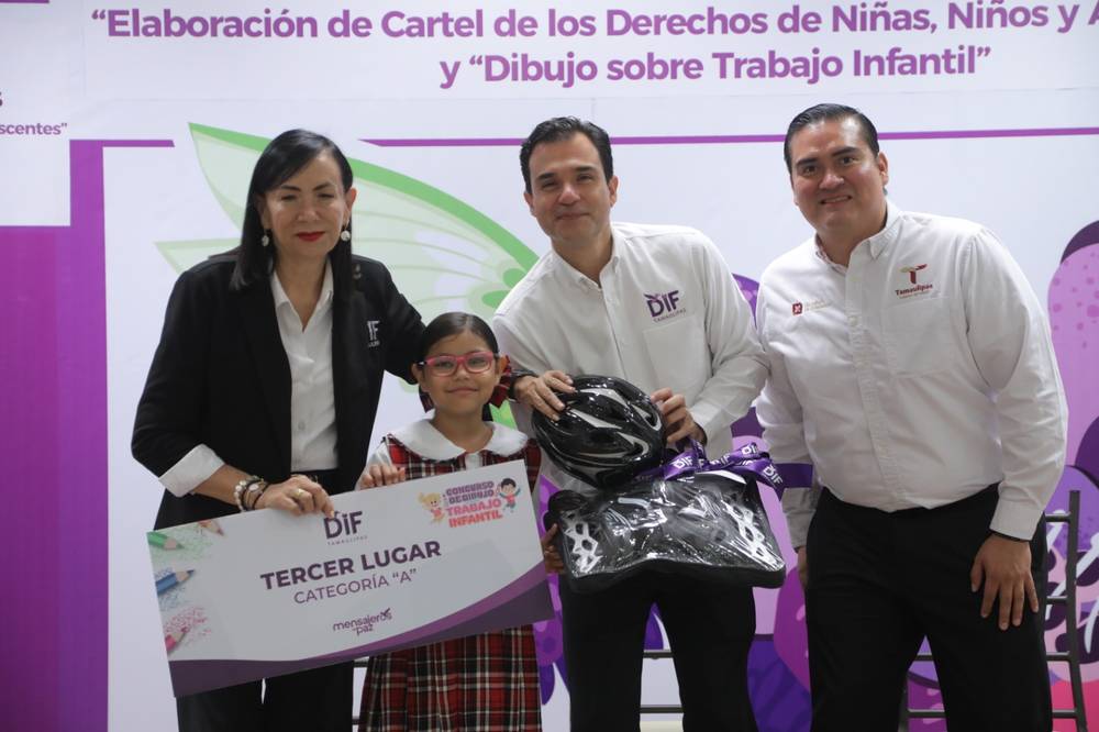 Con la finalidad de fomentar la participación y creatividad artística de la niñez y adolescencia en temas a favor de su bienestar, el Sistema DIF Tamaulipas que preside la doctora María Santiago de Villarreal, premió a las y los ganadores del “Concurso de Elaboración de Cartel de los Derechos de Niñas, Niños y Adolescentes” y “Concurso de Dibujo sobre Trabajo Infantil”.