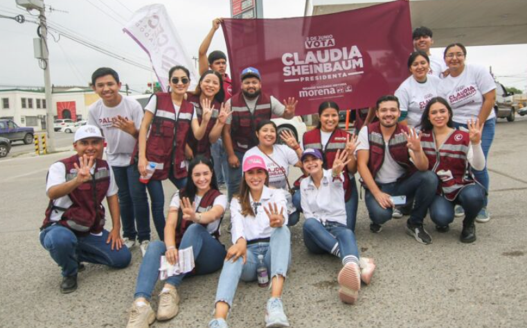 La candidata por Morena al Senado de la República, Cecilia Guadiana, encabezó una pega de calcas en un crucero de la ciudad, acompañada de su suplente Pily de Aguinaga, militantes y simpatizantes.