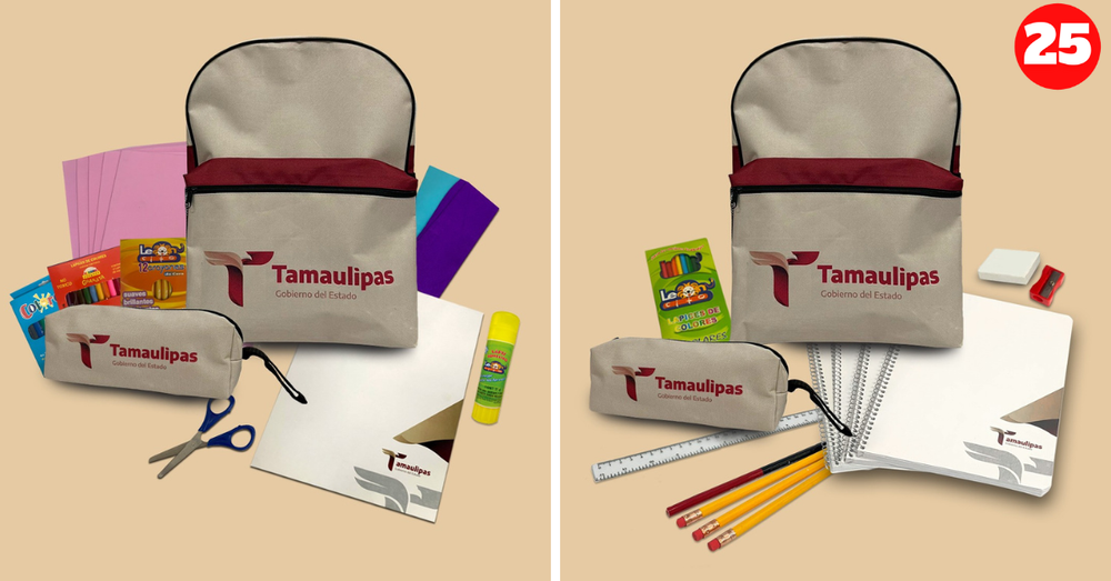 Para las y los alumnos de primero a tercer grado de primaria, el paquete estará compuesto por cuaderno profesional de cuadro grande con 100 hojas, cuaderno profesional de raya con 100 hojas, cuaderno profesional doble raya con 100 hojas, cuaderno profesional dibujo con 100 hojas, tres lápices número dos, bicolor, caja de colores de madera con 12 lápices, goma para borrar, sacapuntas, regla graduada y mochila con lapicera; de cuarto a sexto grado de Primaria, llevará cuaderno profesional de cuadro grande con 100 hojas, cuaderno profesional cuadro chico con 100 hojas, tres cuadernos profesionales de raya con 100 hojas, tres lápices número dos, bicolor, caja de colores de madera con 12 lápices, dos bolígrafos, goma para borrar, sacapuntas, regla graduada y mochila con lapicera.