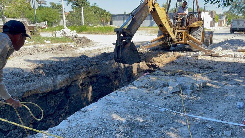 De acuerdo con el titular del Departamento de Obras Públicas, Ing. Jesús M. Hernández, los trabajos se desarrollan en el cruce de las calles Carranza y Pino Suárez, donde se lleva a cabo la reposición del tubo del colector general, con el objetivo de mejorar el sistema de drenaje y las condiciones de esta importante vialidad, continuando los trabajos en la reposición de la demás tubería.