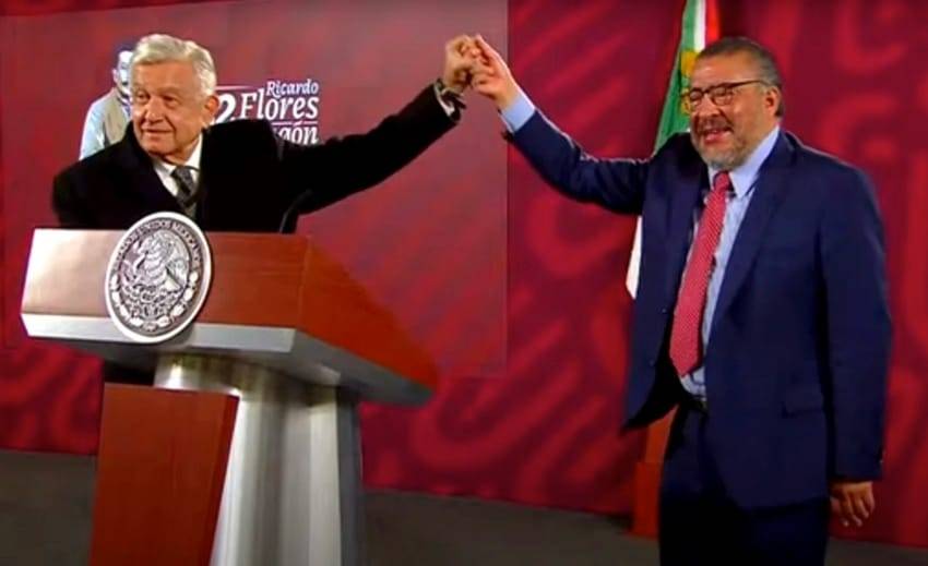 El presidente López Obrador alzó el brazo al exdirector de Aduanas y dijo que era un “campeón”.