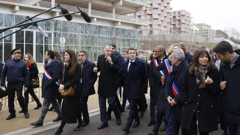 El presidente visitó las instalaciones, recorrió parte de las 52 hectáreas que se han convertido en un nuevo barrio dividido entre tres municipios del norte de la capital, en un paraje donde había una zona industrial a orillas del Sena.