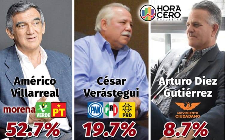 Ya con nombres definidos, el candidato morenista, Américo Villarreal Anaya, encabezó las preferencias con el 52.7 por ciento de las menciones.