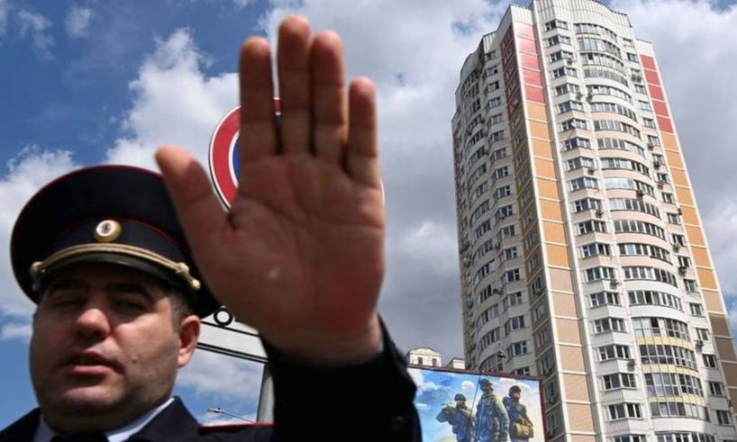 Los restos de los drones cayeron sobre algunos de los altos edificios residenciales de Moscú, dañando sus fachadas y destruyendo algunas de sus ventanas.