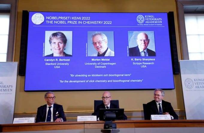 Los estadounidenses Carolyn R. Bertozzi y K. Barry Sharpless y el danés Morten Meldal fueron reconocidos por su labor en química clic y reacciones bioortogonales, que sirven para producir medicamentos contra el cáncer, analizar ADN y crear materiales a medida para usos concretos.