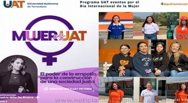 El martes 7 de marzo, la UAT desarrollará en sus dependencias de Ciudad Victoria diferentes conferencias sobre inclusión, participación y empoderamiento de la mujer; en el Campus Tampico se disertará una charla en torno a esta celebración, se efectuará el concierto “MujerEs Arte” y se hará una presentación sobre los aportes de las mexicanas al arte; y en la UAM Mante se impartirá una charla sobre violencia en el noviazgo.