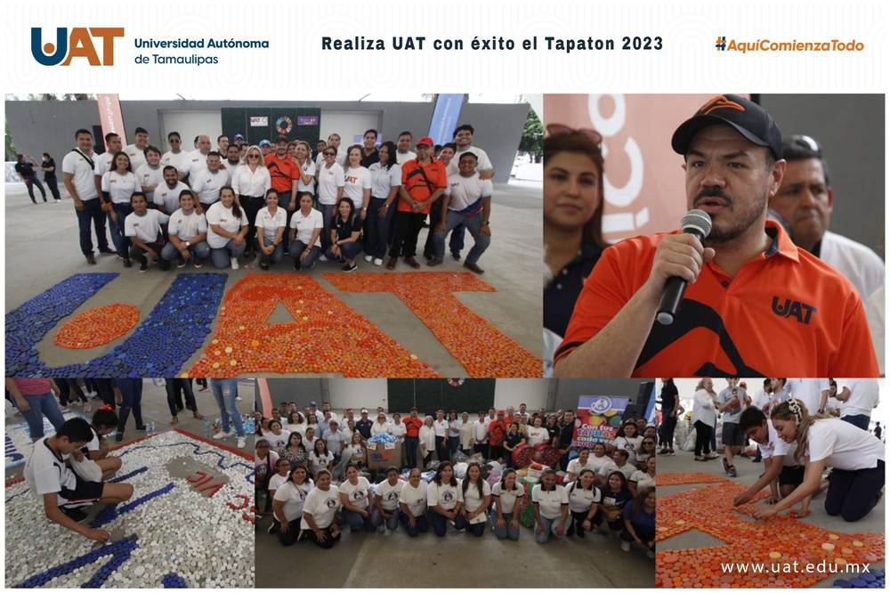 La Universidad Autónoma de Tamaulipas (UAT) llevó a cabo el Tapatón 2023 organizado en coordinación con la asociación “Un cachito de Luz», cuya actividad tiene como propósito reunir la mayor cantidad de taparroscas para beneficiar a pacientes con cáncer.