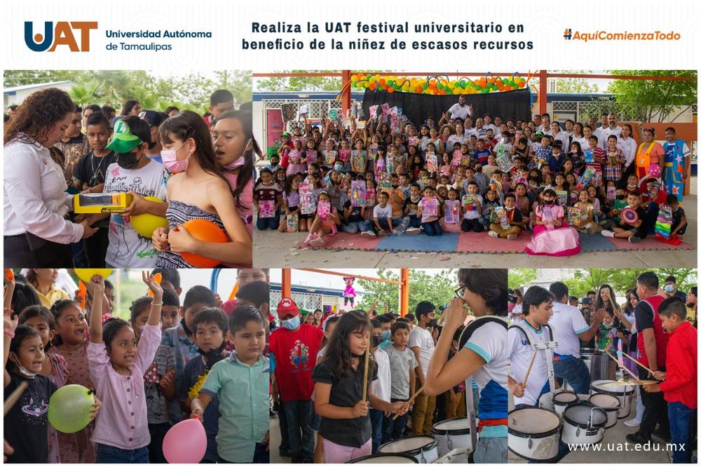 En el marco de la celebración de este 30 de abril día del niño y la niña, la Universidad Autónoma de Tamaulipas (UAT) llevó a cabo el Festival Infantil Universitario en el cual estudiantes y trabajadores de la institución hicieron entrega de juguetes y llevaron momentos de recreación y esparcimiento en la Primaria “Dr. Rodolfo Torre Cantú” ubicada en la colonia Marte. R. Gómez de Cd. Victoria.