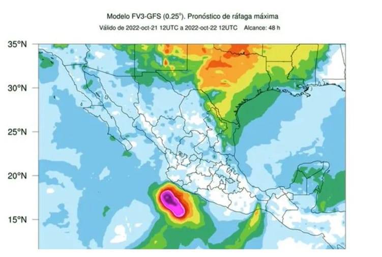 Habrá lluvias muy fuertes con puntuales intensas en Colima, Michoacán y Guerrero; intervalos de chubascos con lluvias puntuales fuertes en Jalisco, Oaxaca, Chiapas, Nayarit, Edoméx, CDMX, Morelos, Puebla, Veracruz, Campeche, Tabasco y Quintana Roo.